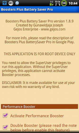 Overview: BoostersPlusBatterySaverPro needs root permissions. You need to allow the SuperUser privileges to run this application.