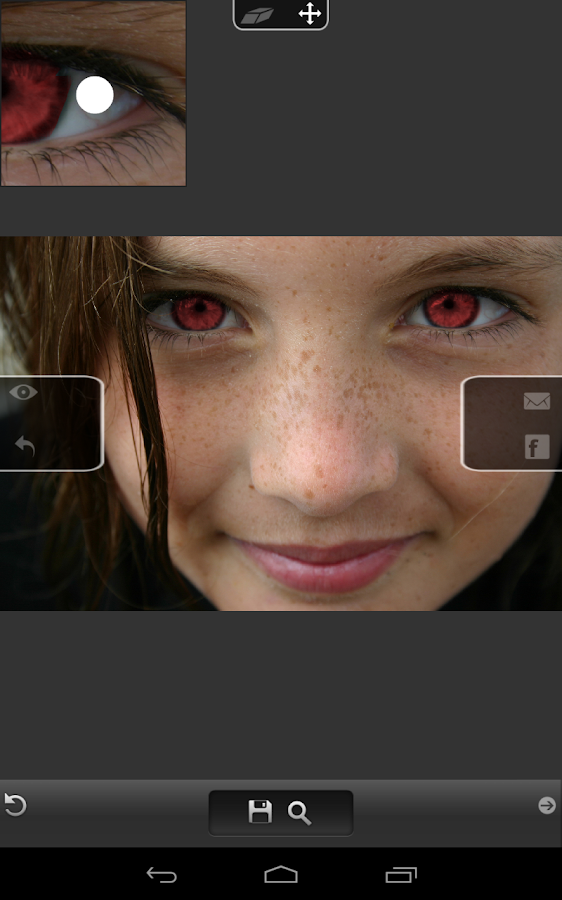 This app is great for enhancing eye color in photos taken under poor light conditions. You can also use it to remove "red eyes" from flash photos taken at night.