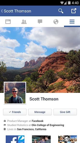 • Swipe to quickly navigate among different areas in Facebook