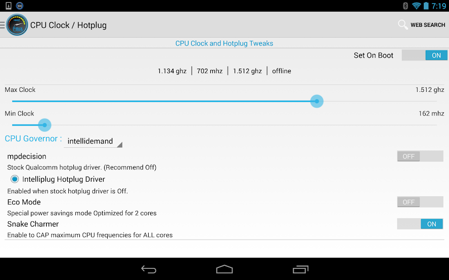 > CPU Governor Control: (supports ANY CPU governor!)